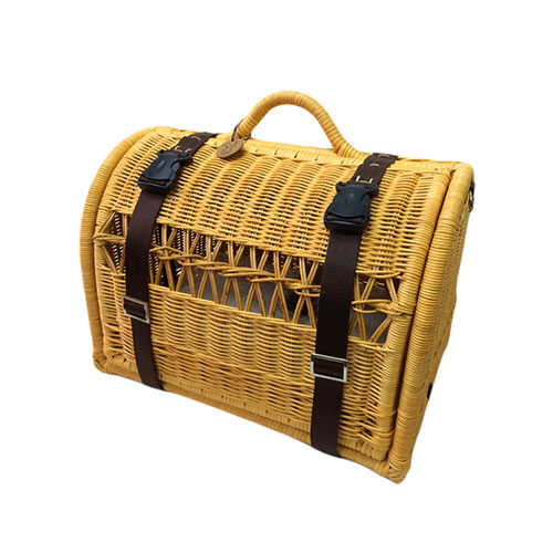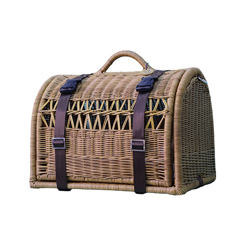 扉を上に上げてベルトで固定すればご自宅用のハウスとしてお使い頂ける便利なラタンキャリーです。