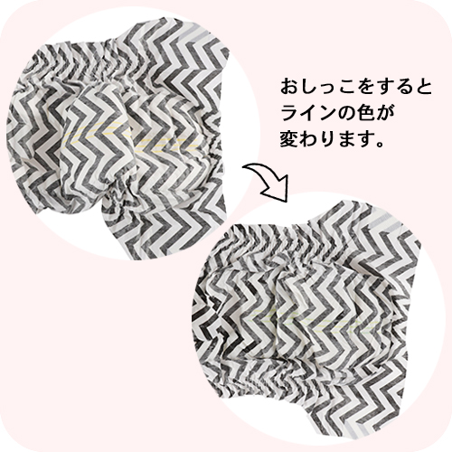 おしっこをすると黄色のラインが青色に変わる「おしっこお知らせライン」付き。
