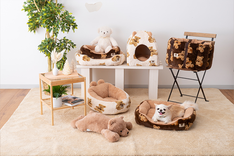 【ハッピーベアー】くまプリントファーラウンドベッド Happy Bear