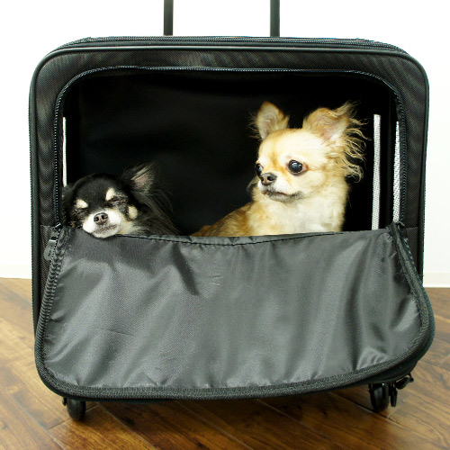 2輪タイプのように中で愛犬が斜めで苦しい思いをせずに済みます。