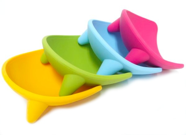 食事中に容器が滑らないようにシリコーンのスタンドをつけました。