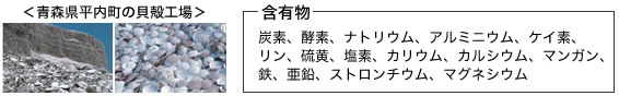 青森県産のホタテ貝を粉砕し、特殊製法で焼く事によりミネラル豊富なパウダーが生まれます。