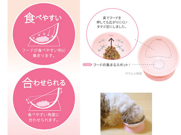 「ペットの種類を選ばず、食べやすく」というコンセプトで傾き自在の食器!