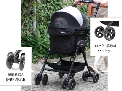 走行時の振動や衝撃を減らして、愛犬も快適なおでかけができます。