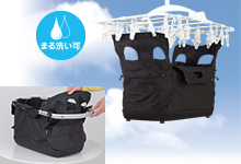キャリーカバーは簡単に取り外せてまる洗いOK。
